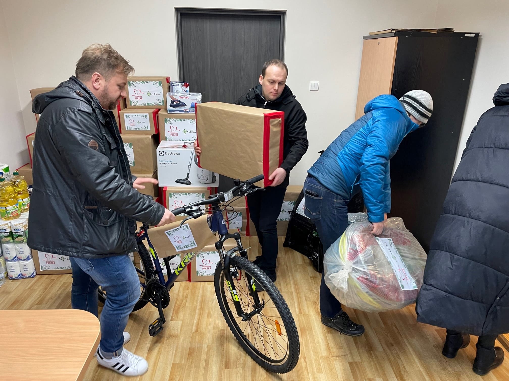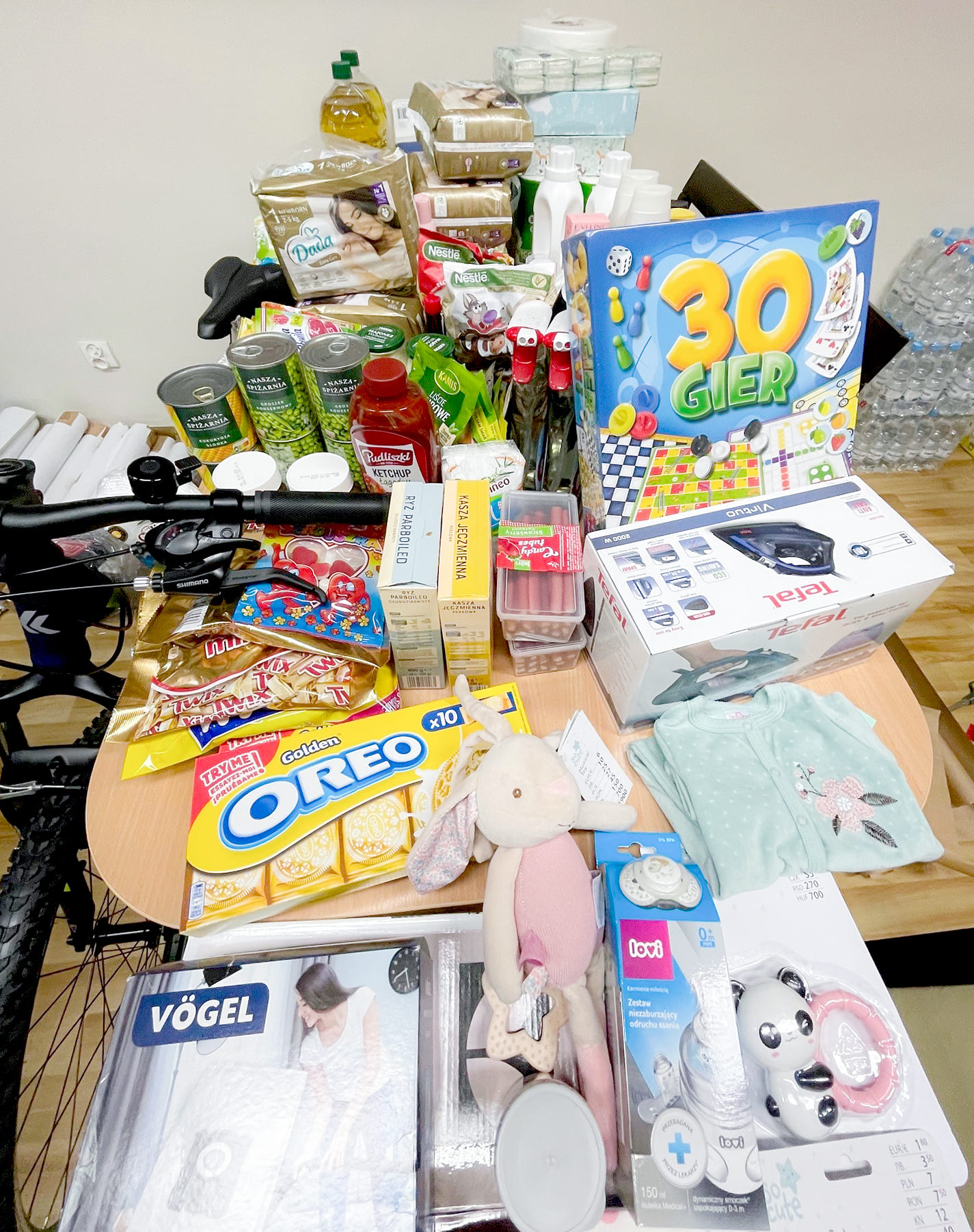 Kolejny raz udało nam się przygotować wspaniałą paczkę, w skład której wchodziła m.in. żywność trwała, środki czystości, materiały szkolne i produkty niemowlęce. Pracownicy podarowali także piękny zestaw garnków, telewizor, obuwie oraz kurtki dla chłopców. Zakupiliśmy dodatkowo odkurzacz i żelazko, a także rower, który był wielkim marzeniem dzieci.