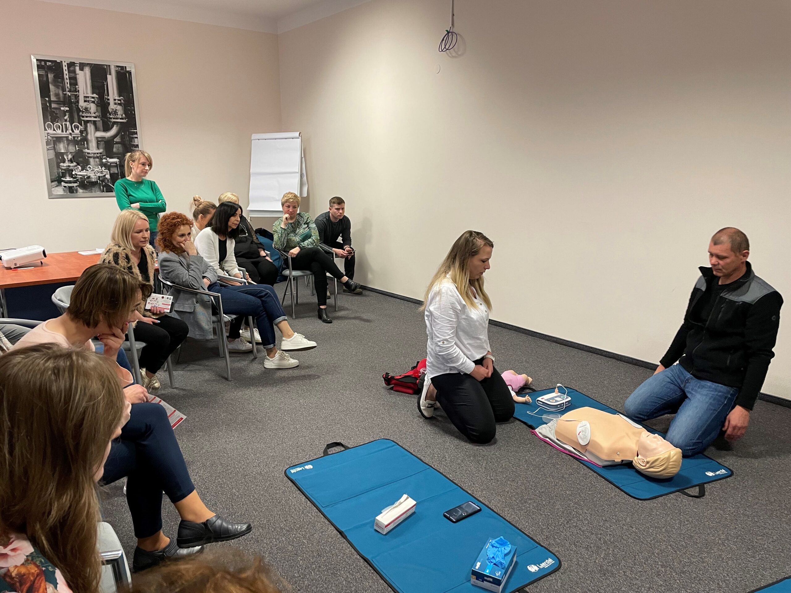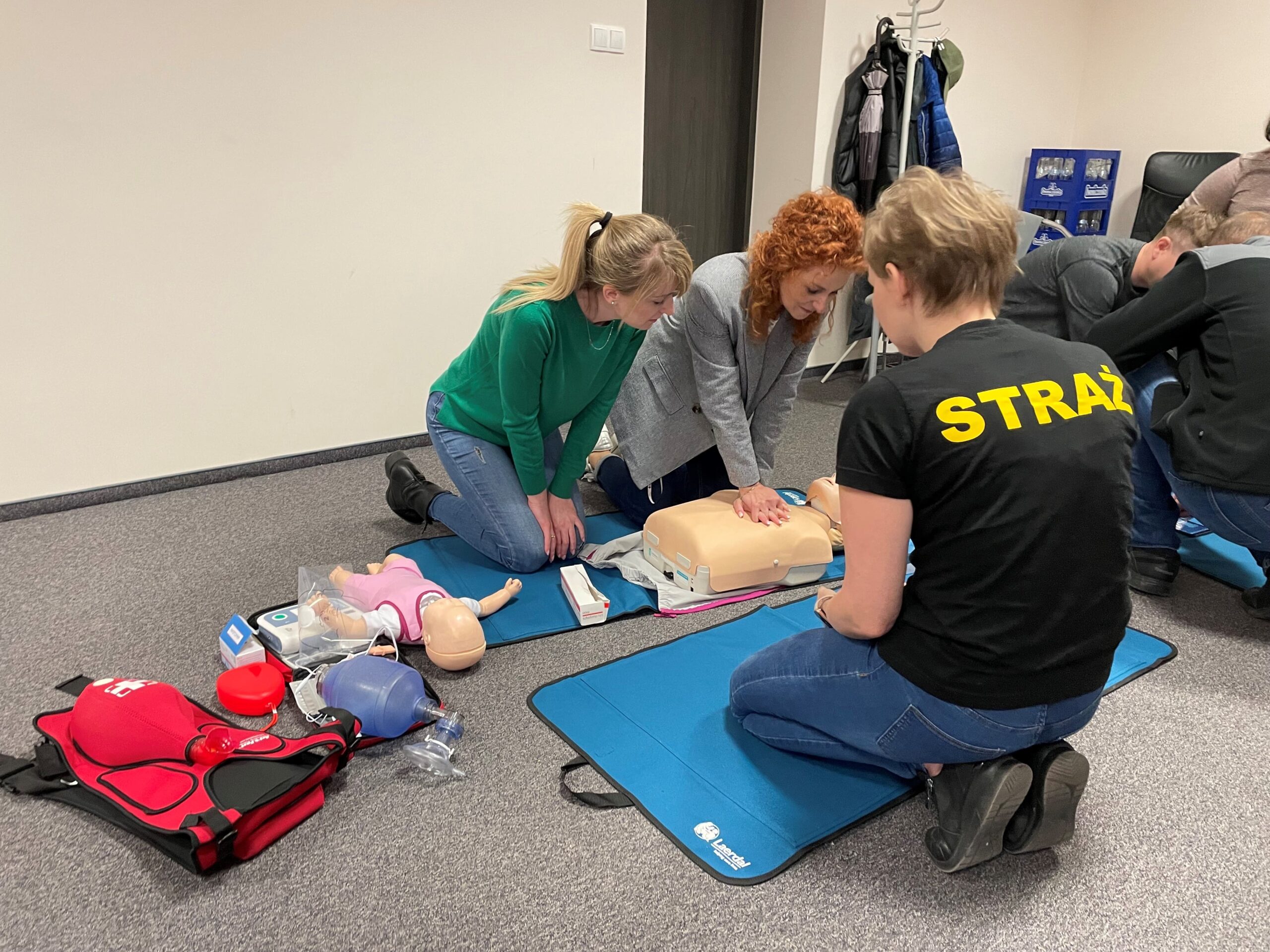 Szkolenie z pierwszej pomocy to wyjątkowa okazja, aby uzyskać kompetencje które pomogą odpowiednio zareagować w sytuacjach zagrożenia zdrowia i życia.W czasie zajęć uczestnicy mieli okazję przećwiczyć resuscytacje na fantomach, a także zapoznać się z obsługą Automatycznego Defibrylatora Zewnętrznego (AED). Ponadto, uczestniczy ćwiczyli ze specjalną kamizelką Act Fast, która służy do nauki rękoczynu Heimlicha na zakrztuszenia i zadławienia.