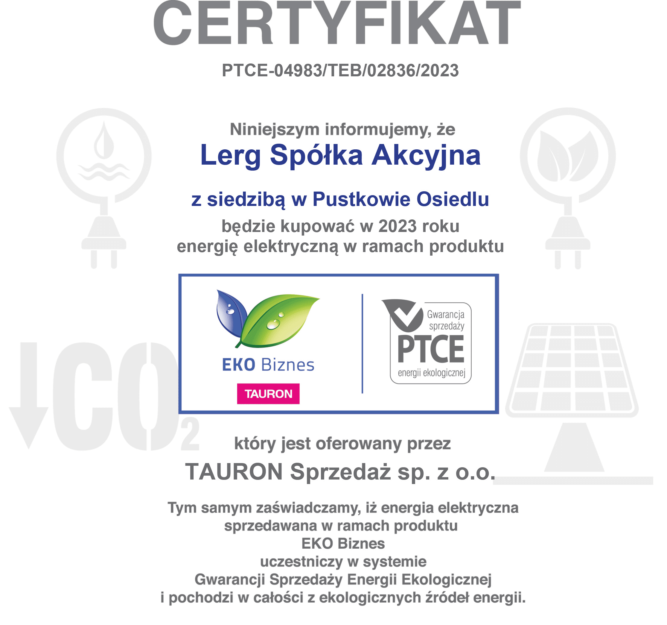 Żywice Lerg będą produkowane z wykorzystaniem energii elektrycznej o obniżonej emisji CO2. Lerg S.A. wybrał z oferty Tauron produkt…